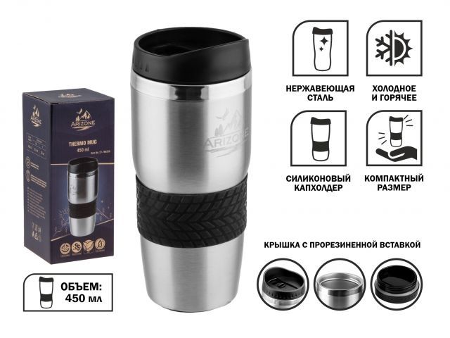 Термокружка, 450 мл, нержавеющая сталь, ARIZONE (27-796200)