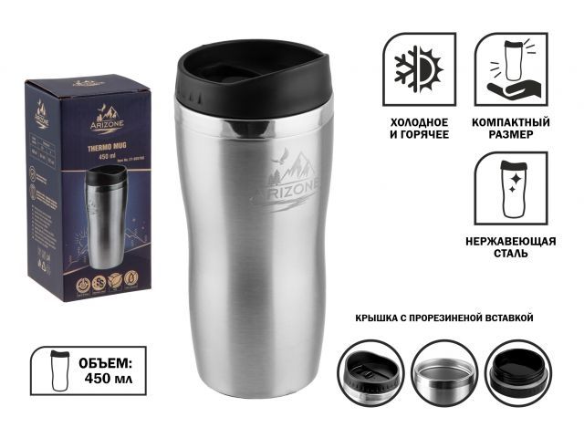 Термокружка, 450 мл, нержавеющая сталь, ARIZONE (27-800700)