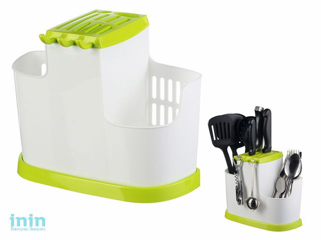 Позволяет компактно разложить кухонные приборы и аксессуары для сушки. имеет 2 отделения разной высоты для столовых приборов, отверстия для сушки ножей, лопаток, поварешек, а также крючки для сушки ситечка, ножа для овощей и другой кухонной утвари.