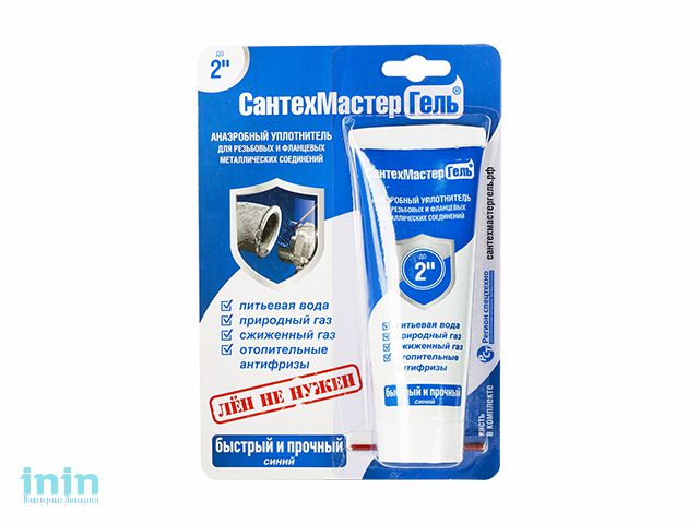 Гель Сантехмастер 60 г синий РегионСпецТехно (04019) - это анаэробный герметик для металлических резьбовых и фланцевых соединений. Образует высокопрочное уплотнение, устойчивое к различным средам: вода, природный и сжиженный газ, бензин, отопительные антифризы и др. Подойдет для труб диаметром до 2 дюймов.