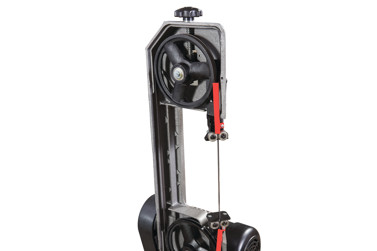 Натяжение полотна регулируется вручную. Для этой цели слева, в торцевой части станочной рамы имеется маховик.