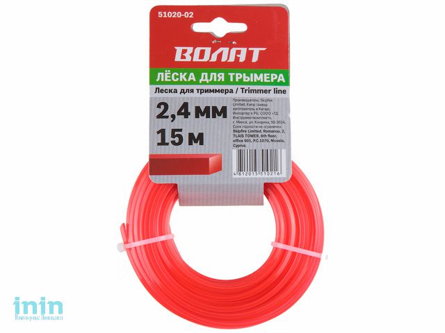 Леска ф 2.4 мм х 15 м квадратн. сеч. ВОЛАТ