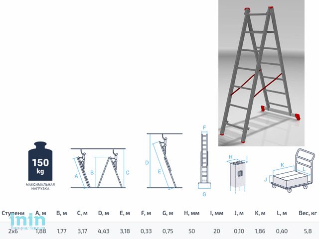 Высота лестницы - 318см, высота стремянки - 177см.
