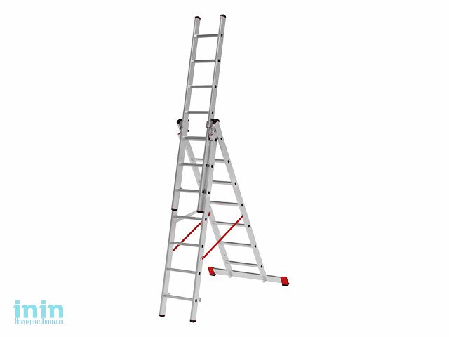 Лестница алюм. 3-х секц. 430/1126/450см 3х17 ступ., 38,5кг NV323 Новая Высота (макс. нагрузка 150кг)