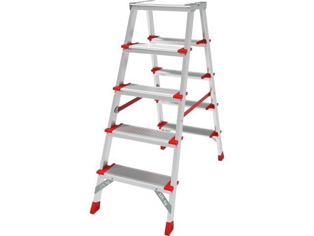 Ориентация ступеней на обе стороны позволяет работать, не переставляя стремянку и тем самым экономя время