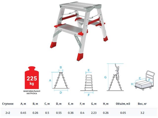 Лестница-стремянка алюм. двухст. 45 см 2 ступ. 3,6кг NV 3127 Новая высота (Макс. нагрузка - 225 кг.) (Новая Высота) (3127202)