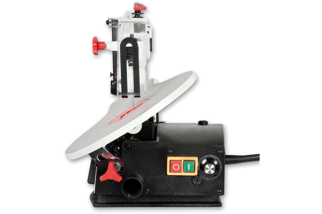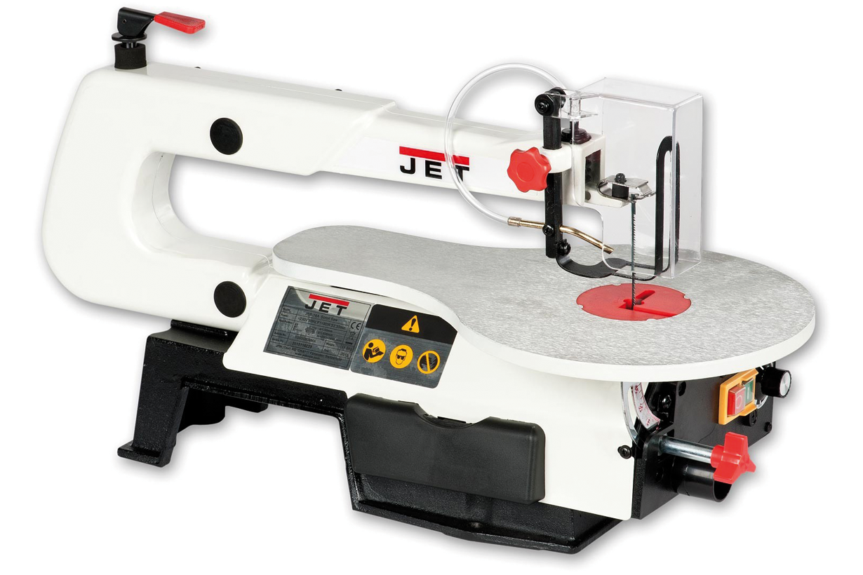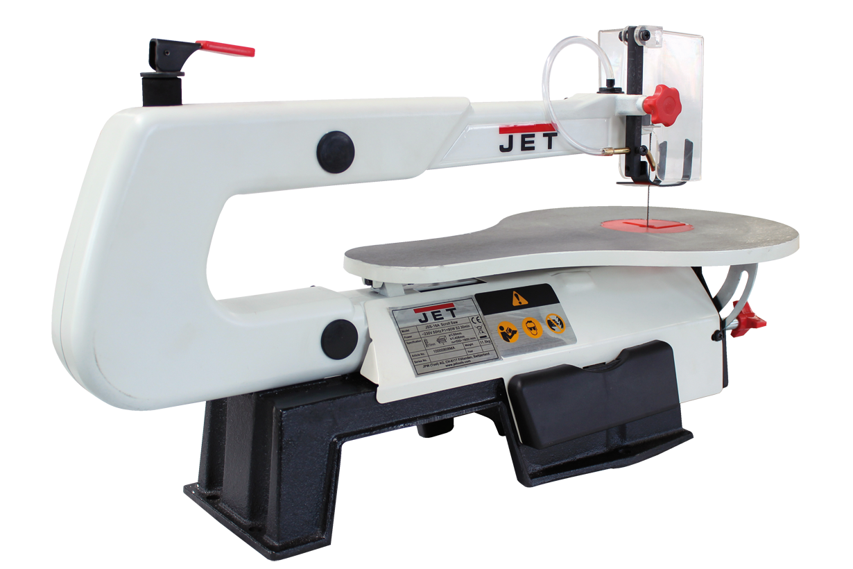 Jet JSS-16A – любительский станок для выпиливания сложных радиусов в не слишком крупных заготовках из древесины, ДСП, ДВП, фанеры или пластмассы. Модель представляет собой улучшенную модификацию хорошо известного лобзикового станка Jet JSS-16 и имеет ряд интересных конструктивных особенностей, выгодно отличающих ее от аналогов других марок. Прежде всего, это универсальность в отношении используемых полотен: можно устанавливать пилки как со штифтовым креплением, так и без него. Важно отметить удобное верхнее расположение рычага натяжения полотна. Новое усовершенствование в конструкции – возможность изменить ориентацию плоскости распила: вдоль или поперек продольной оси станка, смотря как удобнее или привычнее оператору.