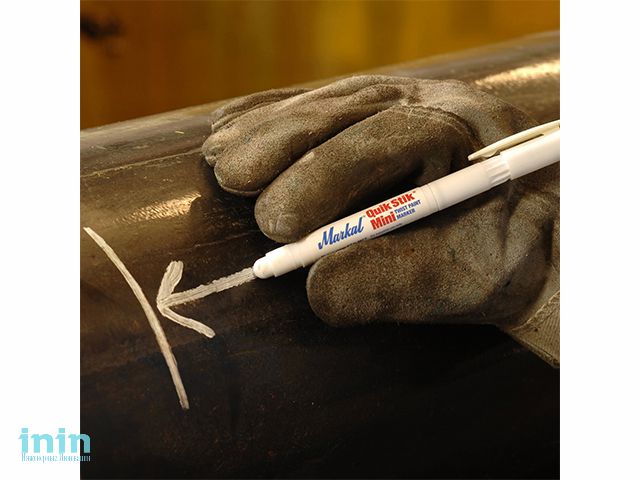 Quik Stik Mini компактный маркер с твердой краской в пластиковом корпусе идеально подходит для тонкой маркировки на гладких и шероховатых поверхностях. Это уменьшенная версия Markal Quik легко помещается в карман или пояс с инструментом. Краска ложиться ровным однородным слоем и не оставляет комков, надписи имеют хорошо видимые линии. Маркировка устойчива к атмосферным осадкам,  УФ-излучению, не боится проливов растворителей, бензина, масел и других агрессивных веществ. Корпус из прочного пластика предотвращает стержень маркера от повреждений и обеспечивает длительное использование в промышленных условиях. Дизайн маркера с винтовым механизмом для выдвижения стержня обеспечивает чистоту рук, одежды и инструменты на протяжении всего использования маркера.