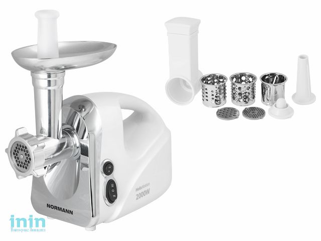 Производительная электрическая мясорубка с функцией реверса, удобной быстросъемной горловиной и теркой для овощей с насадками.