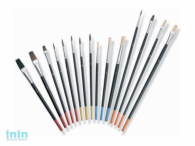 Комплект: 5 кистей из свиной щетины, 10 из щетины пони;