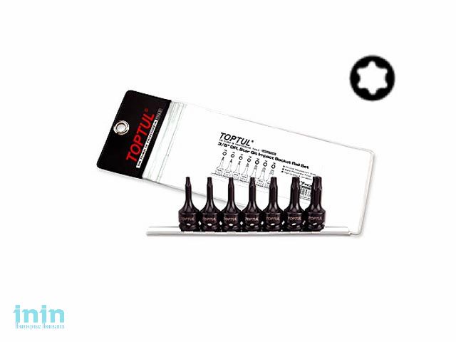 Набор бит шестигранных под головку 3/8" на подвесе TOPTUL включает в себя 7 бит (T20-T50), обработанных черным фосфатом. Применяется в качестве оснастки для гайковерта. Рекомендуется для профессионального использования.
