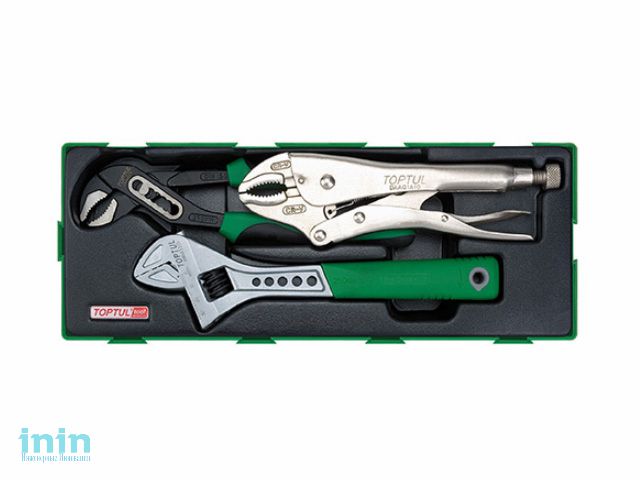 Набор-сет плоскогубцы перест., зажим, ключ разводн. 3предм. TOPTUL (GTA0315)