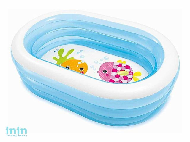 Бассейн имеет необычную овальную форму и полностью прозрачные толстые стенки, которые способствуют еще большей безопасности детей при купании и устойчивости конструкции бассейна.