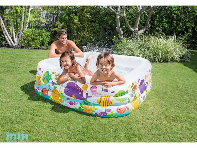 Бассейн квадратной формы, оформленный красочными изображениями рыбок и других обитателей морского мира, может стать спасением от летнего зноя для ваших детей. Изготовлен из ПВХ толщиной 0,30 мм - качественного и безопасного материала, устойчивого к воздействию ультрафиолетовых лучей, что гарантирует сохранение изначального внешнего вида даже при длительном нахождении на солнце. Имеется сливной клапан.