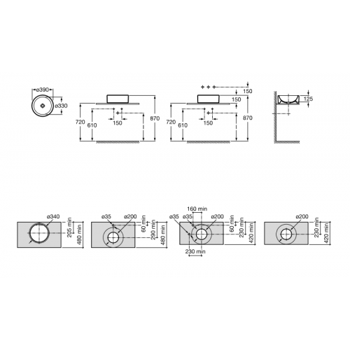 Умывальник накладной Roca Terra 39x39, 32722D000