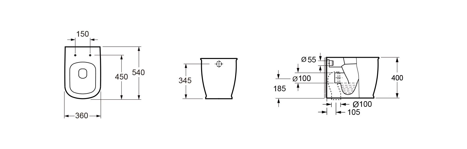 приставной, без бачка, универсальный выпуск, с сиденьем