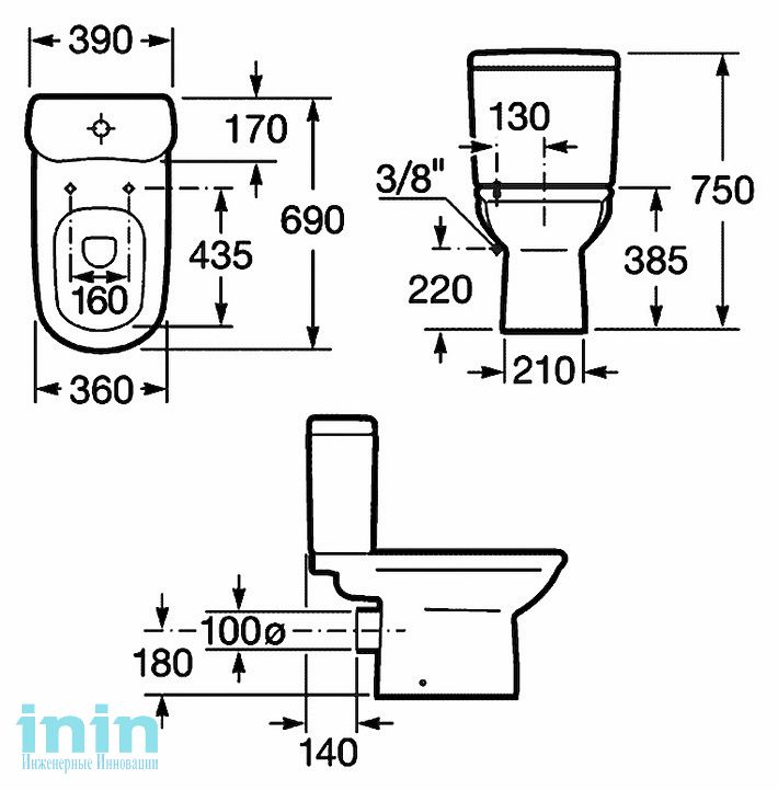 напольный, компакт, нижний подвод воды, универсальный выпуск, двухрежимный слив, с сиденьем