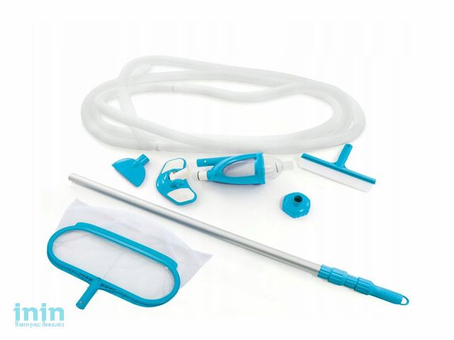 Для сбора осадка и мусора со дна бассейна, нужно подключить набор по следующей схеме: гофрированный шланг одним концом присоединяется к отверстию в стенке бассейна, через которое поступает вода в фильтрующий насос, а к другому концу крепится одна из насадок для очистки дна бассейна. При включении насоса необходимо медленно передвигать щетку по дну. Мусор вместе с водой будет проходить через колбу-фильтр (частично крупный мусор останется здесь) и поступать в насос, где и останется, а чистая вода поступит обратно в бассейн.