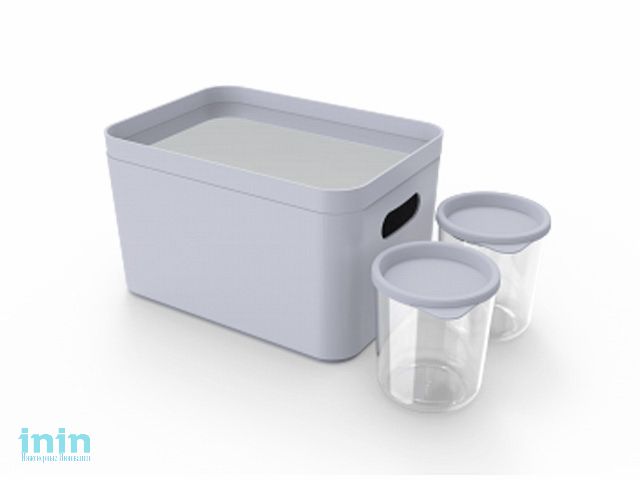 Набор органайзеров для косметики Eva - идеальная система для хранения косметических средств, так как включает в себя корзинку с ручками, крышку с зеркалом, две баночки с крышкой.