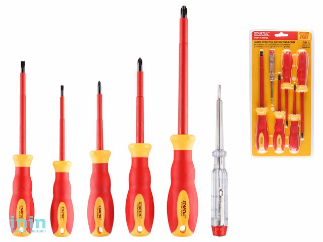 Набор отверток диэлектрических 6шт STARTUL MASTER (ST3051-6) (Комплект: SL4.0х0.8х100мм, SL5.5х1.0х125мм, PH1х80мм, PH2х100мм, PH3х150мм, тестер)