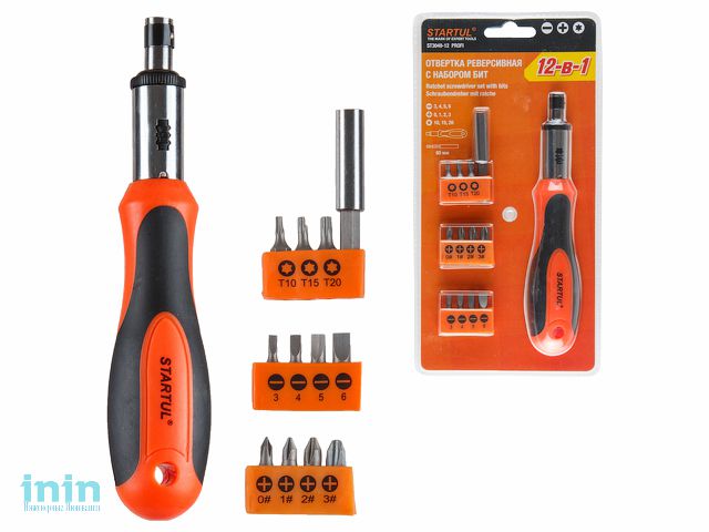 Отвертка реверсивная с набором бит 12-в-1 STARTUL PROFI (ST3049-12)