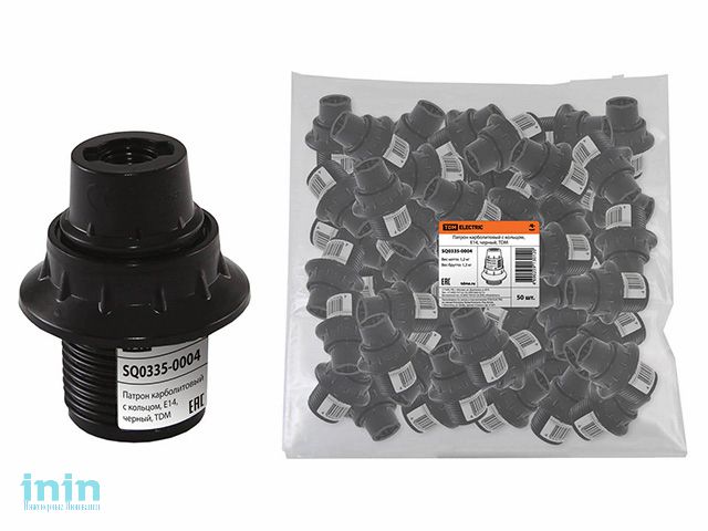 Патрон карболитовый с кольцом, Е14, черный, TDM