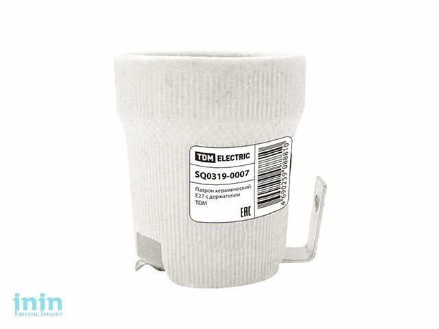 Патрон керамический E27 с держателем TDM (Для комплектации светильников бытового и промышленного исполнеия.)
