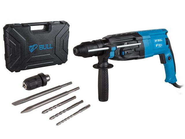 Характеристики: 950W, SDS+, 3-х реж, 2.5Дж, 0-1050 об/мин, 0-4670 уд/мин, бетон-28мм, вес 5.3 кг Комплектация: кейс, перфоратор, 3 бура, 2 зубила, рукоятка доп., огр.глубины, запасные щетки.