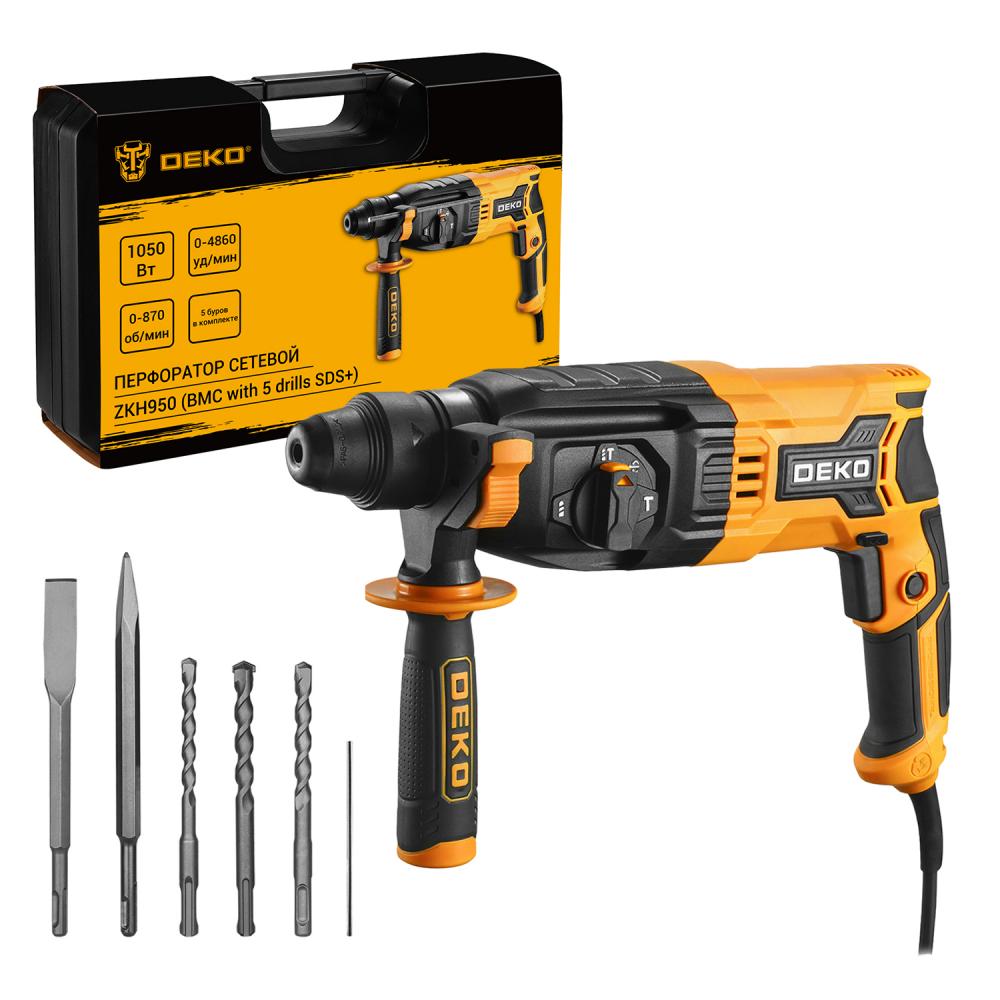 Перфоратор сетевой DEKO ZKH950 функционирует в трех режимах: сверление, ударное сверление, долбление.