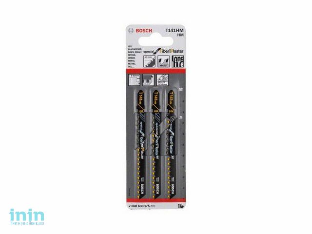 Пилка лобз. по стеклопластику/гипсокартону T141HM (3 шт.) BOSCH (пропил прямой, грубый, Carbide Technology, разведенные зубья)