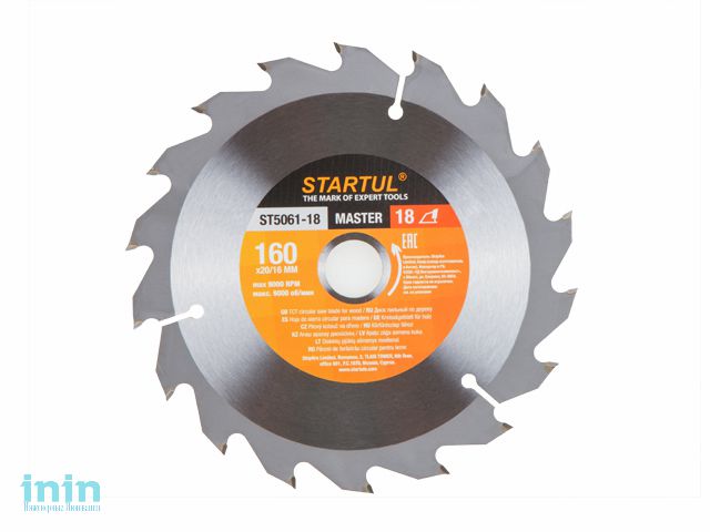 Диск пильный 160х20/16 мм 18 зуб. по дереву STARTUL (твердоспл. зуб)