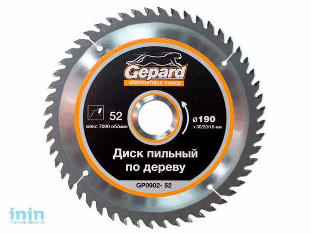 Диск пильный 190х30/20/16 мм 52 зуб. по дереву GEPARD (твердоспл. зуб)