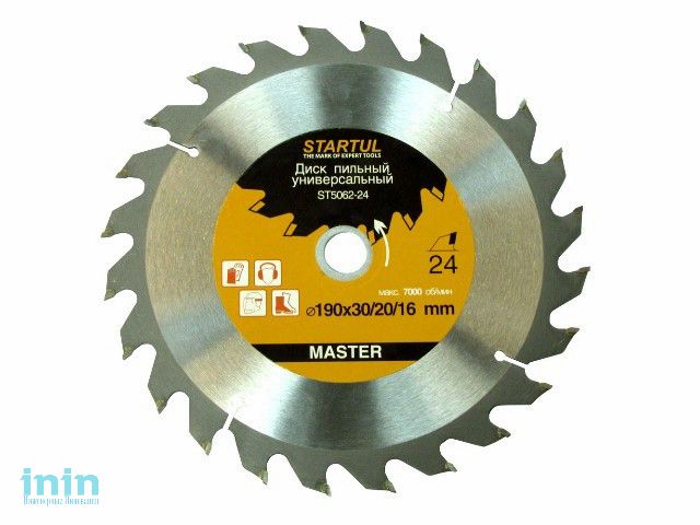 Диск пильный 190х30/20/16 мм 60 зуб. по дереву STARTUL (твердоспл. зуб)