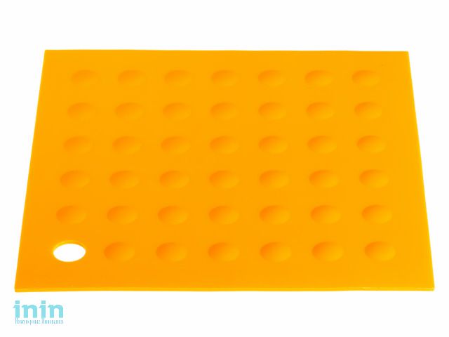 Замечательная, яркого насыщенного цвета подставка.Силикон достаточно толстый и на неё можно поставить что угодно, от кастрюли до небольшого противня сразу из духовки.Она не скользит по поверхности стола, очень гибкая. Отлично моется с обычным средством для посуды.