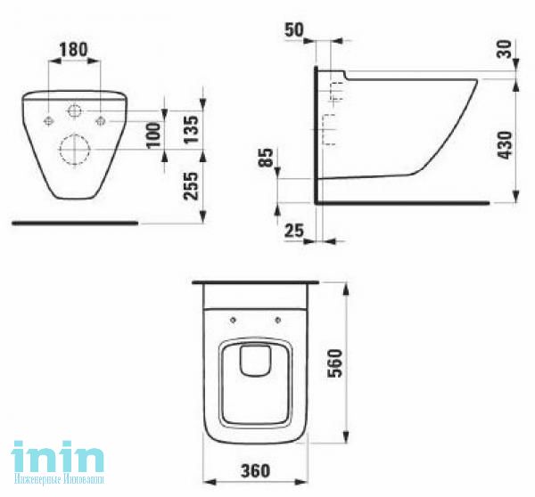 Унитаз Laufen подвесной, пристенный, прямоугольной формы. Комплектация: чаша унитаза