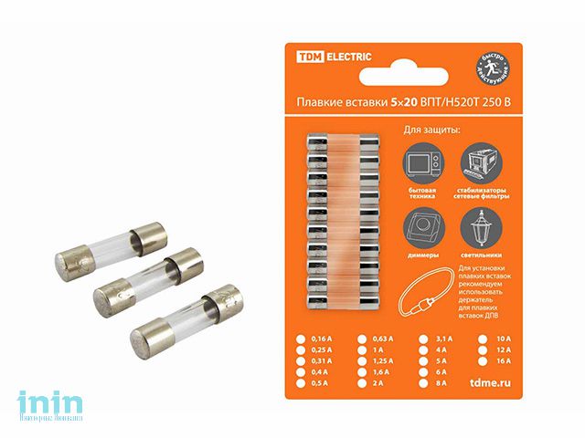 Плавкая вставка ВПБ6-3 0,315А 250В TDM упак (10 шт.)