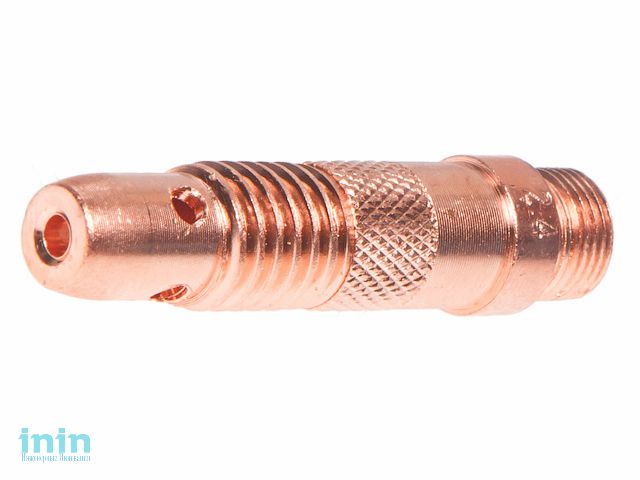 Зажим цанги является расходным элементом TIG горелки. Предназначен для фиксации электрода с цангой в TIG горелке. Отверстия на зажиме служат для распределения потока защитного газа.