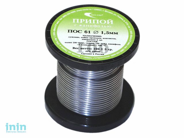 Припой ПОС 61 трубка, катушка ф1,5мм, с канифолью (100г) (Векта)