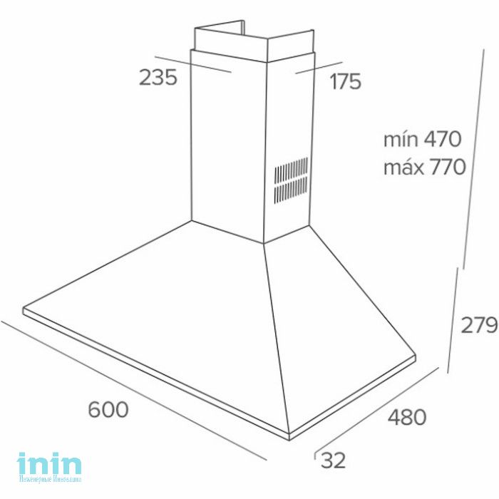 Пристенная пирамидальная вытяжка, мотор с двойной турбиной, панель управления с кнопками, индикатор включения, 3 скорости, 2 алюминиевых фильтра, рамка высотой 32 мм по периметру, лампы накаливания 2*40 Вт, производительность: в тестовом режиме, м3/ч: 700, на максимальной скорости (IEC-61591), м3/ч: 380, на минимальной скорости (IEC-61591), м3/ч: 234, уровень шума (UNE-EN 60704-2-13): на максимальной скорости, дБ: 59,8, на минимальной скорости, дБ: 44,3, в комплекте: переходник 150/120 мм, европейская вилка, опция (не входит в комплект): угольный фильтр D4C код 61801262 - 2 шт., класс энергоэффективности: E, класс гидродинамической эффективности: F, класс эффективности освещения: G, класс эффективности фильтрации жира: D, максимальная номинальная мощность, Вт: 195, сделано в Испании