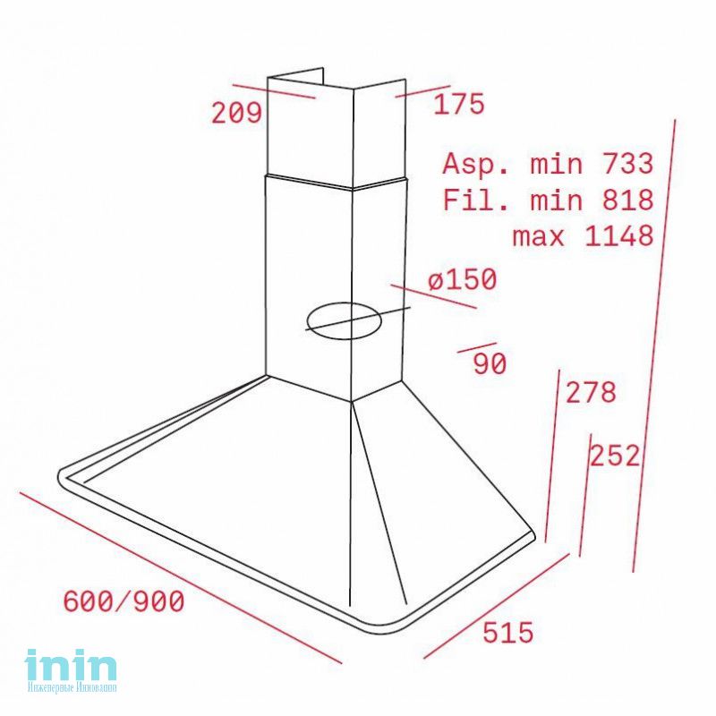 Пристенная пирамидальная вытяжка, мотор с двойной турбиной, электронная панель управления, гладкое глянцевое покрытие, индикатор включения, 3 скорости, 3 алюминиевых фильтра, галогенные лампы 2*20 Вт, производительность: в тестовом режиме, м3/ч: 1130, на максимальной скорости (IEC-61591), м3/ч: 603, на минимальной скорости (IEC-61591), м3/ч: 256, уровень шума (UNE-EN 60704-2-13): на максимальной скорости, дБ: 66, на минимальной скорости, дБ: 51, в комплекте: переходник 150/120 мм, европейская вилка, опция (не входит в комплект): угольный фильтр D5C 61801259 - 2 шт., класс энергоэффективности: C, класс гидродинамической эффективности: B, класс эффективности освещения: E, класс эффективности фильтрации жира: D, максимальная номинальная мощность, Вт: 290, сделано в Польше
