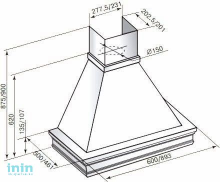 Пристенная пирамидальная вытяжка, мотор с одной турбиной, механическая слайдерная панель управления, 3 скорости, алюминиевый фильтр, декоративный багет из неокрашенной древесины дуба (под покраску), светодиоды 2*3,5 Вт, производительность: в тестовом режиме, м3/ч: 1000, в интенсивном режиме (IEC-61591), м3/ч: 950, на максимальной скорости (IEC-61591), м3/ч: 807, на минимальной скорости (IEC-61591), м3/ч: 240, уровень шума (UNE-EN 60704-2-13): в интенсивном режиме, дБ: 59, на максимальной скорости, дБ: 58, на минимальной скорости, дБ: 38, в комплекте: европейская вилка, опция (не входит в комплект): угольный фильтр D8C код 90000000 - 1 шт., класс энергоэффективности: D, класс гидродинамической эффективности: D, класс эффективности освещения: A, класс эффективности фильтрации жира: C, максимальная номинальная мощность, Вт: 280