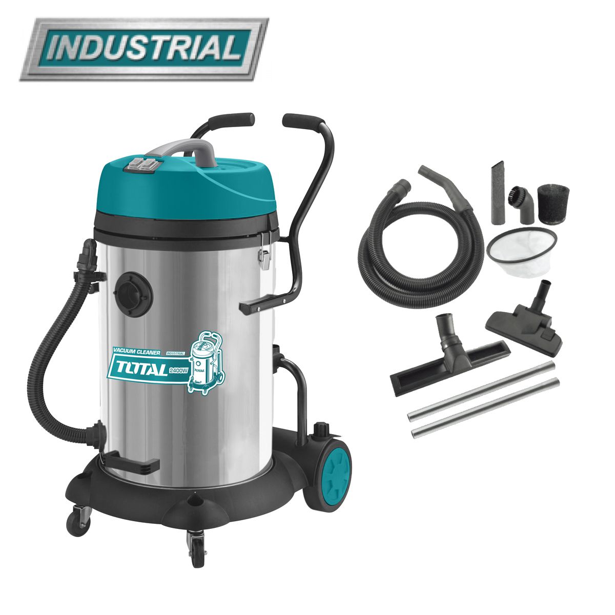 TOTAL TVC24751 – модель 2-х моторного технического пылесоса, предназначенная для сбора строительной пыли: уборки бетонной пыли, древесных опилок, стружки металла, мельчайших осколков и другого строительного мусора.
