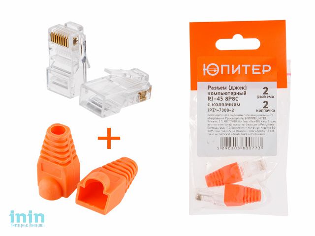 Разъем (джек) компьютерный RJ-45 8P8C с колпачком (по 2 шт.) ЮПИТЕР (инд. упаковка)