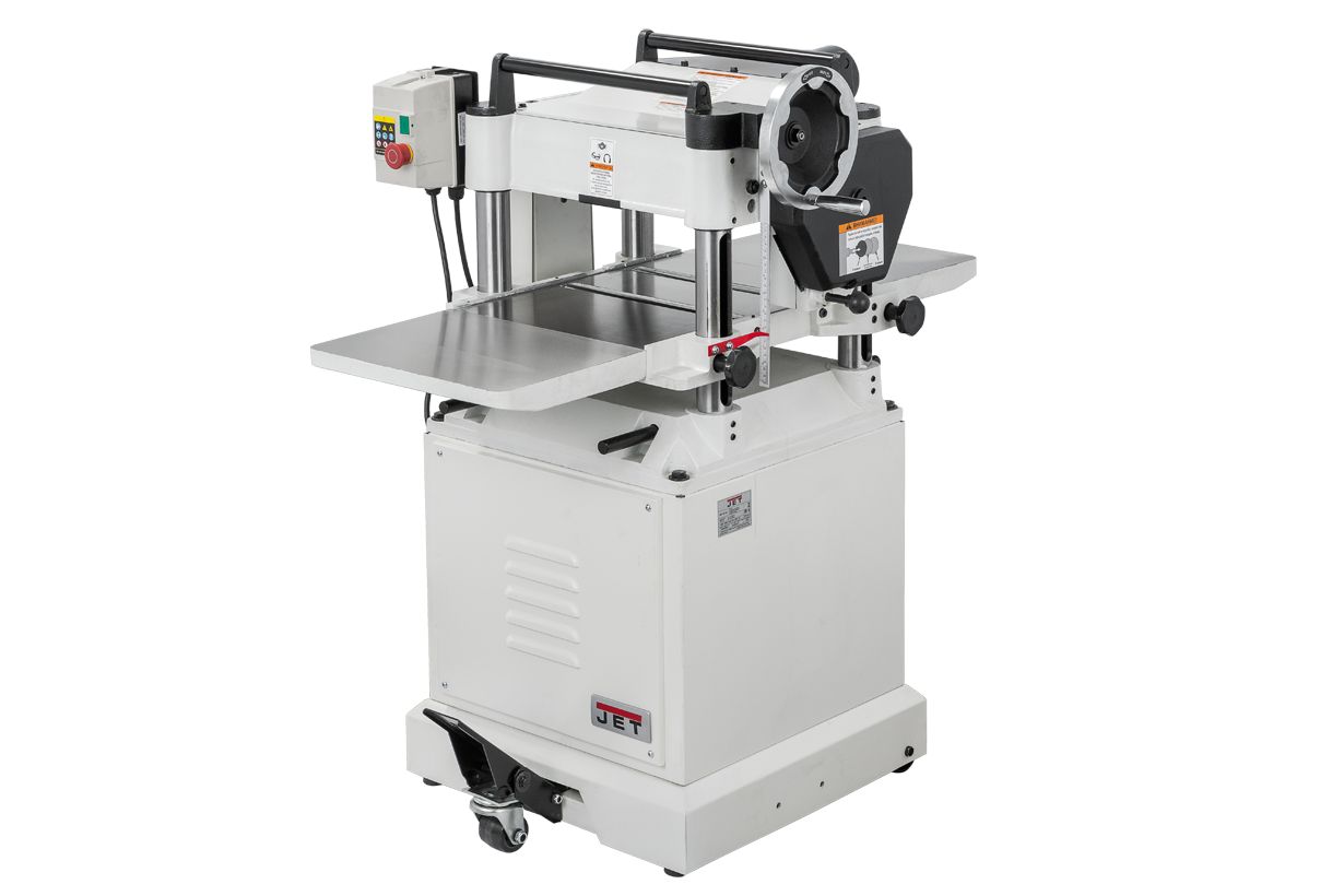 Сверху направляющих колонн установлено два металлических ролика для обратной подачи заготовок. Рабочий стол станка, его удлинения, основание и строгальный узел сделаны из чугуна. Регулировка просвета происходит при подъеме и опускании стола, в нижнем положении расстояние до ножей превышает 200 мм, что позволяет пропускать крупные брусья или доски, поставленные на ребро.
