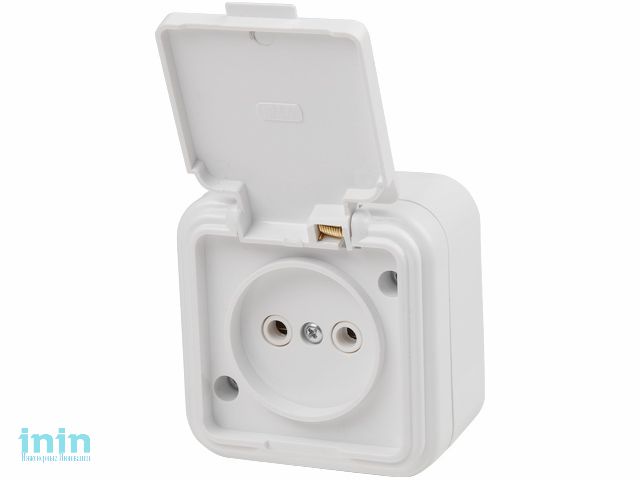 Розетка 1-ая (открытая, б/з, брызг. защ.) белая, Стандарт, Юпитер (RA16-201-Б) (ЮПИТЕР)