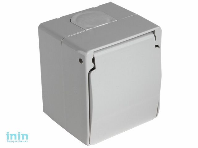 Розетка 1-ая (открытая, с/з, с крышкой) серая, NEMLIYER, MUTLUSAN (16 A, 250 V, IP 44)
