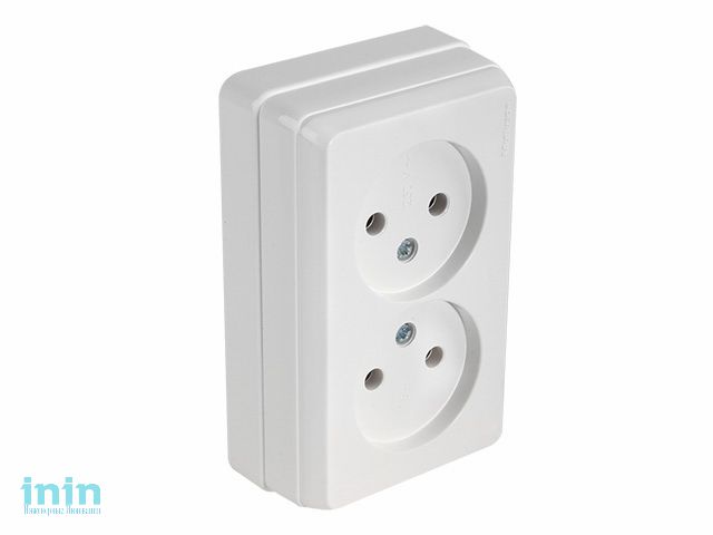 Розетка 2-ая (открытая, б/з) белая, BRON, MUTLUSAN (16 A, 250 V, IP 20)