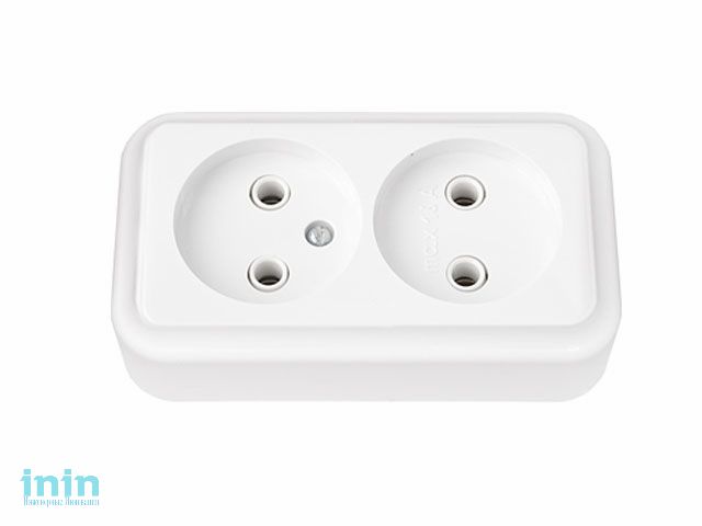 Розетка 2-ая (открытая, б/з) белая, Bylectrica (Розетка двухместная открытой установки Без задн. стенки (крышки) Гарантийный срок:24 месяца)