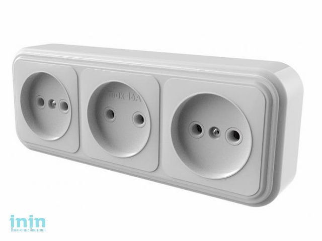 Розетка 3-ая (открытая, б/з) белая, Стандарт, Юпитер (RA16-363-Б) (ЮПИТЕР)