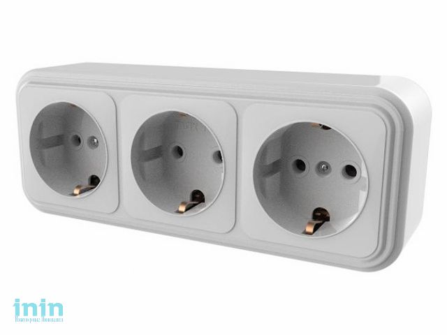 Розетка 3-ая (открытая, с/з) белая, Стандарт, Юпитер (RA16-365-Б) (ЮПИТЕР)